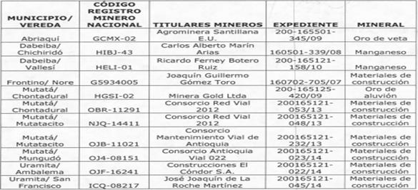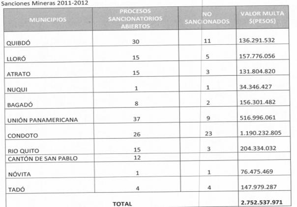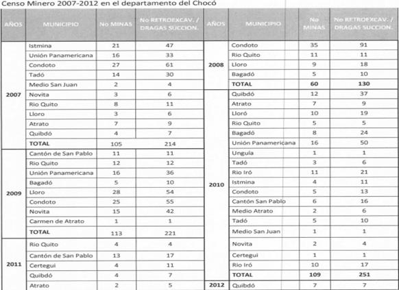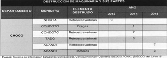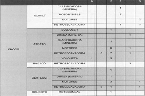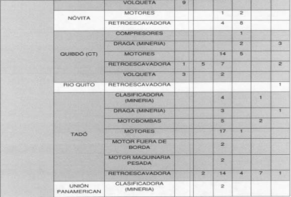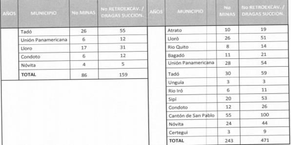 2.3. Indica que los aprovechamientos mineros ilegales que se realizan en el río Atrato, sus afluentes y territorios contiguos, que para 2013 según datos de Codechocó -la autoridad ambiental regional- se estimaron en 200 entables mineros y aproximadamente 54 dragas en operación, se caracterizan por la extracción de metales preciosos, en especial oro y platino, para lo que se emplean distintas modalidades de explotación con maquinaria pesada.
