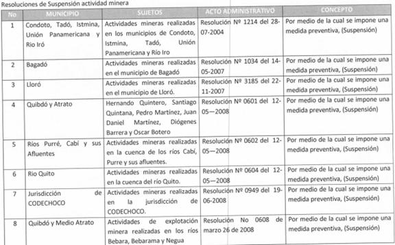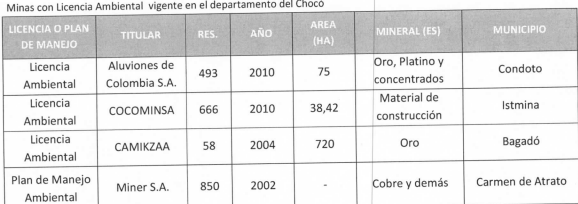Puntualiza que las múltiples afectaciones ambientales, sociales y en salud que vienen produciendo la explotación minera y forestal ilegal que se realiza en el río Atrato, ha motivado la creación de algunos espacios de concertación institucional como la denominada “Mesa Minera Interinstitucional”, que no han funcionado en la medida en que no están abordando las políticas estructurales que requiere el departamento del Chocó para superar esta crisis socio-ambiental ocasionada por la minería, ni las medidas que se necesitan para alcanzar la protección de los derechos de las comunidades, entre ellas las accionantes.