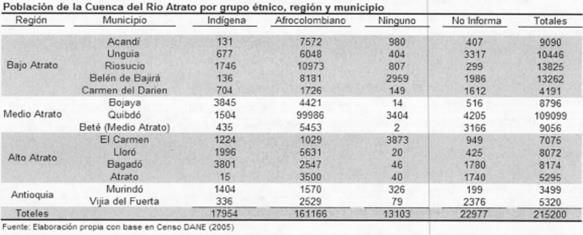 La cuenca del río Atrato se encuentra delimitada al este por la cordillera occidental y al oeste por las serranías del Baudó y del Darién, al sur se encuentra la divisoria de aguas con el río San Juan definida por el istmo de Istmina. Es rica en oro, maderas y se considera una de las regiones con mayor fertilidad para la agricultura. La cuenca hidrográfica del río Atrato la integran comunidades étnicas que habitan en los municipios de Acandí, Bajo Atrato, Riosucio, Bojayá, Lloró, Medio Atrato, Quibdó, Río Quito, Unguía, Carmen del Darién (Curvaradó, Domingodó y Bocas), Bagadó, Carmen de Atrato, en Chocó; y Murindó, Vigía del Fuerte y Turbo, en Antioquia.