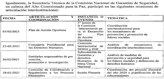 (…) los esfuerzos para proporcionar seguridad a la población firmante del Acuerdo Final de Paz en tránsito hacia la vida civil comenzaron a visibilizarse de manera clara a partir de las órdenes perentorias emitidas por la Jurisdicción Especial para la Paz (…)
