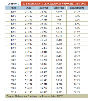 La violencia al interior de las prisiones es un asunto que compete a muchos sistemas penitenciarios y carcelarios en el mundo, pero en especial a aquellos que se encuentran en situación de hacinamiento. La sobrepoblación carcelaria, por sí misma, propicia la violencia. El hacinamiento penitenciario y carcelario lleva a la escasez de los bienes y servicios más básicos al interior de las cárceles, como un lugar para dormir. Esto lleva a que la corrupción y la necesidad generen un mercado ilegal, alterno, en el cual se negocian esos bienes básicos escasos que el Estado debería garantizar a una persona, especialmente por el hecho de estar privada de la libertad bajo su control y sujeción. La prensa, al igual que los escritos académicos, ha mostrado como las personas recluidas en penitenciarias y cárceles tienen que pagar por todo. Conseguir un buen lugar en un pasillo tiene sus costos; conseguir una celda es prácticamente imposible, sobre todo por su altísimo valor. Diferentes analistas de la realidad nacional, en diversos medios de comunicación, han puesto de presente su opinión al respecto. Son voces que coinciden en la gravedad de la crisis carcelaria y de su impacto sobre la dignidad humana y los derechos humanos. Ha sido calificada, entre otros términos, de “insostenible”. Por ejemplo, las condiciones de extorsión y chantaje, generan recursos que, en el contexto del conflicto armado, se convierten en un botín de guerra.