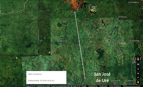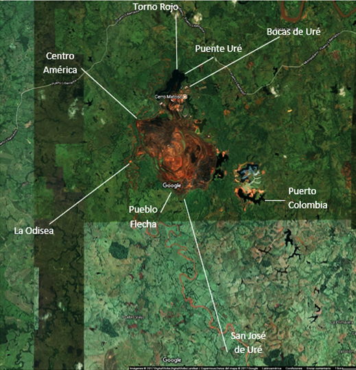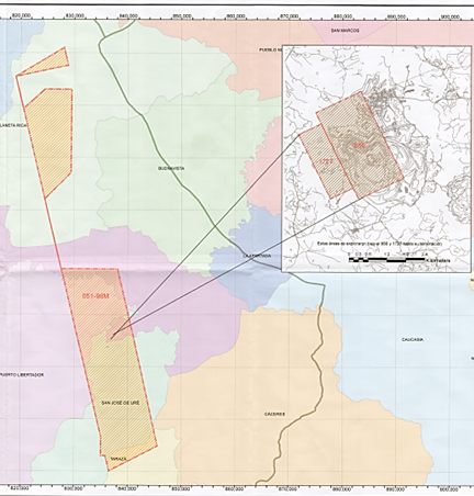 9. El área de concesión 1727 de 1971 está ubicada en la jurisdicción de los municipios de Montelíbano, Puerto Libertador y San José de Uré y colinda con el Consejo Comunitario de Comunidades Negras de Uré – en el municipio de Uré- y el Resguardo Zenú del Alto San Jorge.