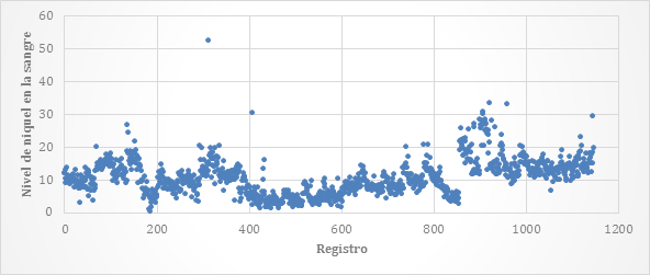 [742] Corte Constitucional. Sala Séptima de Revisión. Sentencia T-733 de 2017. La Corte Constitucional encontró el padecimiento de distintas manifestaciones irritativas de la vía aérea superior, casos de cáncer de pulmón, engrosamiento de la cisura pulmonar, aumento considerable del tamaño del corazón, se encontró un promedio de 10,53 mcg/It de níquel en la sangre, un promedio de 27,36 mcg/It de níquel en la orina, entre otros.