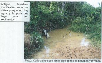 [787] En las mismas pruebas aportadas por la empresa Cerro Matoso S.A. se incluyen imágenes y datos que evidencian el bloqueo del Caño Zaino como consecuencia de la construcción de un canal perimetral, lo que genero el desplazamiento de material de escoria desde la mina hacía el afluente.