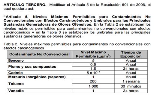 [762] Corte Constitucional. Sala Séptima de Revisión. Sentencia T-733 de 2017. Frente a este punto, la Corte Constitucional estableció que i) no existe normatividad alguna sobre la calidad del aire relacionada con el níquel; ii) en Colombia no se encuentran regulados niveles de níquel para cuerpos de agua de uso doméstico, consumo humano, uso pecuario ni para potabilización; y iii) la aplicación de niveles foráneos al control ambiental resulta ambigua e imprecisa.