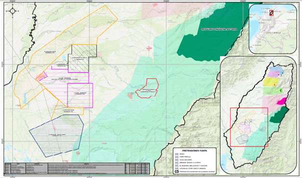 El ministerio allegó un listado de quince áreas que han sido sustraídas de las reservas forestales del río Magdalena y de la Serranía de Los Motilones, para el desarrollo de títulos mineros entre 2007 y 2022. Presentó un mapa con la localización de los resguardos indígenas legalmente constituidos y el área de expectativa de ampliación del territorio Yukpa.