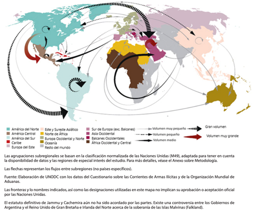 [181] UNODC. Oficina de las Naciones Unidas contra la Droga y el Delito (2020). Estudio mundial sobre el tráfico de armas de fuego, p. 7.