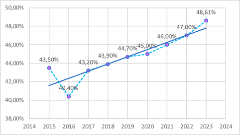 [206] Departamento Administrativo de la Función Pública (2023) Informe sobre la participación efectiva de la mujer en los cargos de niveles decisorios en el Estado colombiano. Dirección de empleo público. Disponible en: https://www.funcionpublica.gov.co/informes-de-ley-de-cuotas