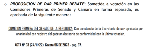 [476] Acta Conjunta número 3 de 24 de noviembre de 2022, publicada en la Gaceta del Congreso 96 de 27 de febrero de 2023. p. 29-30.