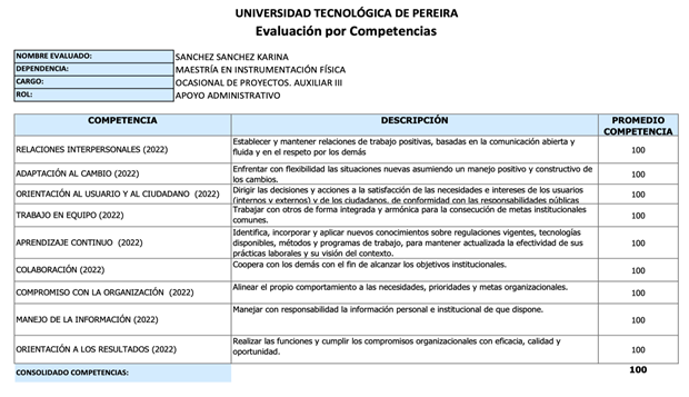 [26] El rector de la universidad accionada aportó los siguientes documentos: (i) copia del correo electrónico del 30 de noviembre de 2022 enviado por el jefe inmediato de la accionante en el que sugería la no renovación del contrato con la demandante; (ii) el comunicado número 02-132-2790 del 29 de noviembre de 2022, emitido por el departamento de talento humano; (iii) copia de las actuaciones adelantadas en torno a la denuncia presentada por la accionante; (iv) el Estatuto de Contratación de la Universidad Tecnológica de Pereira, el Acuerdo 21 de 2007 y la Resolución 2577 de 2015; (iv) los contratos suscritos entre la accionante y la Universidad Tecnológica de Pereira; y (v) los resultados de las evaluaciones de desempeño de la señora Karina Sánchez Sánchez.