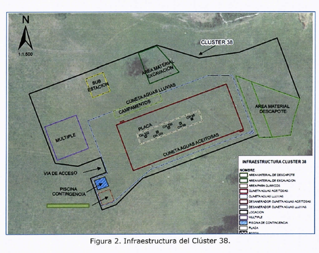 Refiere que el Clúster 38 forma parte del proyecto “Explotación Petrolera Campos Castilla-Chichimene” cuyo operador es la empresa Ecopetrol S.A. y para el cual se autorizó la construcción de 5 pozos.