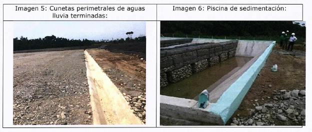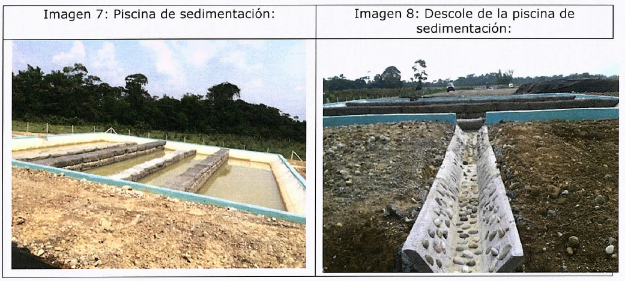 Se construyeron las 2 piscinas de sedimentación en cumplimiento del compromiso adquirido con la comunidad en la reunión efectuada el 15 de noviembre de 2013. Adicionalmente a la segunda piscina se le incorporaron 3 módulos de filtros de grava, que permiten la remoción del material particulado y en suspensión de las aguas, asegurando que el descole de las aguas lluvias, este libre de sedimentos.