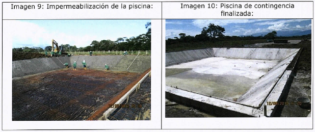 Se instaló una bomba electrosumergible con sus correspondientes líneas como medida de contingencia adicional, en el caso remoto de un evento de contaminación ocasionado por la operación. Esta medida ha permitido incluso bajar el nivel de las piscinas de sedimentación para su mantenimiento y reducir la escorrentía de agua hacia el descole natural del predio.