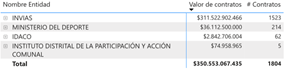[150] Así, el Ministerio del Deporte y el INVIAS concentraron el 74,05% de la contratación de obras de hasta por la menor cuantía con los organismos de acción comunal si se parte del valor contractual, y más del 41,53% si se parte del número de negocios jurídicos celebrados. Esas cifras coinciden con las disponibles sobre los convenios solidarios, en general, pues esas dos entidades fueron las que más suscribieron ese tipo de contratos y por los mayores valores, y las únicas del orden nacional que lo hicieron. Así, en el 13,25% del total de los convenios solidarios firmados en el país, la entidad contratante fue del orden territorial; mientras que en el 86,75% restante, los contratantes fueron el INVIAS o el Ministerio del Deporte.