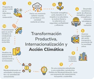 8.1.2 Al respecto, “no se logra extraer de manera clara y evidente cómo esta regulación sobre el mercado público de valores contribuye de manera significativa y directa a la Economía productiva a través de la reindustrialización y la bioeconomía, título de la sección de la Ley 2294 donde está insertada, o [a] algún otro eje de transformación del PND”[9]. Tampoco se encuentra demostrada una relación entre la norma acusada y el objetivo de planificación económica consistente en la Transformación productiva, internacionalización y acción climática. Igualmente, la norma no guarda relación alguna con los ejes transversales del PND.