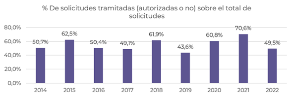[167] Esta información coincide y se refuerza por las cifras presentadas por la ANDI, que evidencian que existe una tendencia descendente generalizada a lo largo de los años, disminuyendo gradualmente desde 2014 hasta 3022.