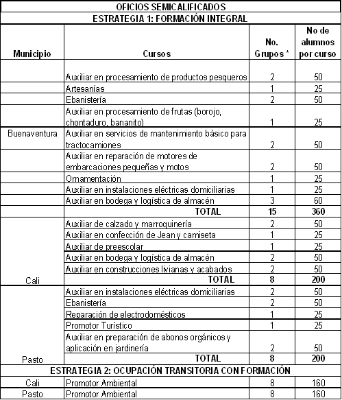 [24] Ministerio el Interior y de Justicia, Ministerio de Hacienda y Crédito Público, Ministerio de Defensa Nacional, Ministerio de la Protección Social y entidades adscritas ICBF, SENA, Ministerio de Agricultura y Desarrollo Rural y entidades adscritas Banco Agrario e Incoder, Departamento Nacional de Planeación, Programa Presidencial para los Derechos Humanos, Ministerio de Comercio, Industria y Turismo-Fomipyme y Bancoldex, Ministerio de Educación Nacional, Ministerio de Ambiente, Vivienda y Desarrollo Territorial, y Acción Social.