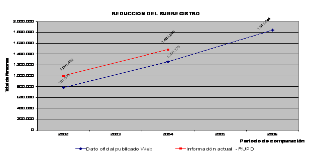 [13] Reporta un crecimiento para el 2002 del 21.96% del Registro Único y del 28.15% en el número de personas. Asimismo, para el 2004 indica un crecimiento del Registro Único del 15.17% equivalente al aumento del 17.89% de personas.