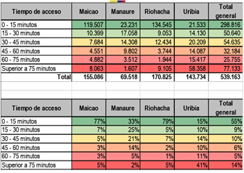 [33] Entre los denominadores comunes que permiten la organización y delimitación de los municipios en 51 territorios, el MSPS resaltó los siguientes: comunidades que conforman el territorio, familiar que hacen parte de cada comunidad, indicadores de morbi-mortalidad, factores protectores, sabedores de medicina tradicional y prácticas propias en salud Wayuu, colegios, UCAS, programas del ICBF y oferta institucional (agricultura, vías, soluciones de agua y alimentación).
