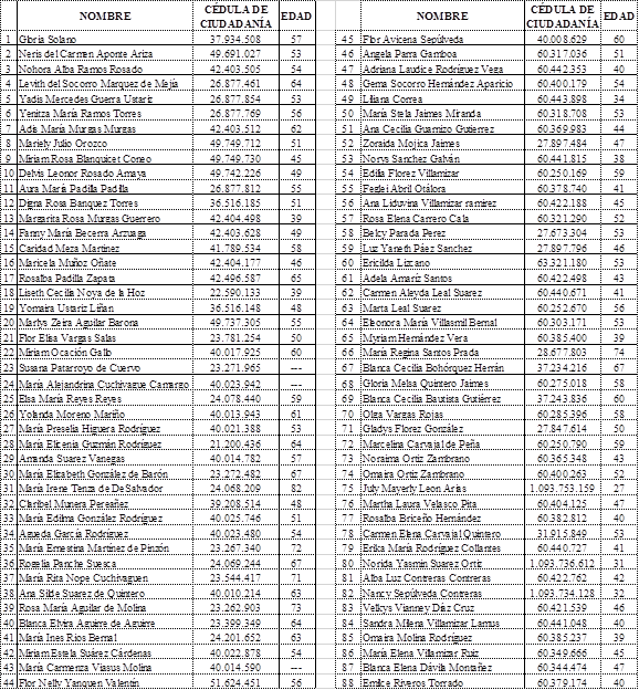 (iii) Además, de esas 88 accionantes: 19 se hallan en el estatus personal de la tercera edad, al contar con 60 años de edad o más. Incluso, de esas 19 madres comunitarias, 5 de ellas cuentan con 70 años o más.