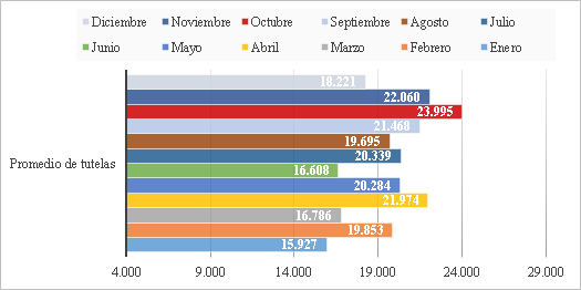 [166] Según el Ministerio, las tutelas presentadas por cada 1.000 habitantes fueron de 3,79.