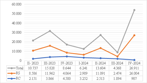 [132] Para el III trimestre de 2023 11 multas por valor de $11.284.486.000, para el IV trimestre de 2023, 43 sanciones por valor $16.253.920.000. Para el año 2024 fueron: 19 para el I trimestre por valor de $5.567.900.000, 8 para el II trimestre por valor de 5.135.000.000, 6 para el III trimestre por valor de $2.158.000.000 y, 10 para el IV trimestre por valor de $3.250.000.000.