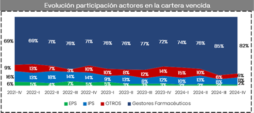 [105] Particularmente la falta de liquidez y los retrasos prolongados en los pagos a proveedores se han convertido en un factor crítico que compromete seriamente la disponibilidad y continuidad del suministro de medicamentos en el país. Esta situación ha llevado a que algunos laboratorios farmacéuticos impongan restricciones, como la limitación o bloqueo del cupo asignado a diferentes actores de la cadena de suministro, lo que dificulta la reposición oportuna de inventarios y genera interrupciones frecuentes en el abastecimiento