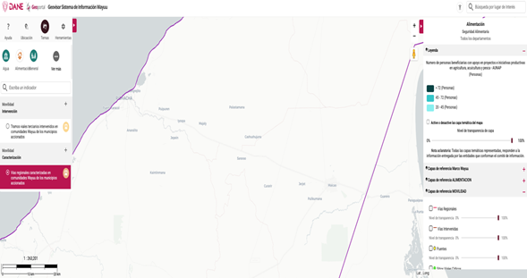 [147] El Geovisor fue consultado el 19 de mayo de 2025 en el siguiente enlace: https://geoportal.dane.gov.co/geovisores/sociedad/sistema-informacion-wayuu/