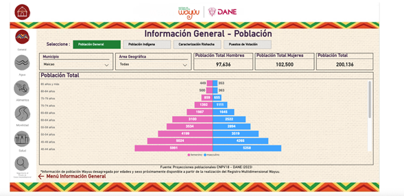 [151] El siguiente enlace se consultó el 16 de mayo de 2025 https://siwayuu.dane.gov.co/es/home#tableroDeDatos
